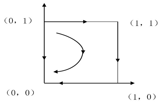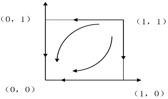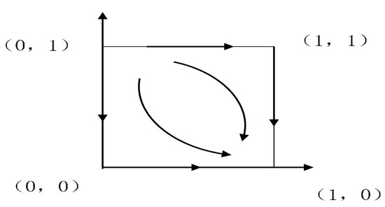 The phase diagram of the replication dynamics of the evolutionary game at this time can be obtained according to Table 4, as shown in Figure 1.