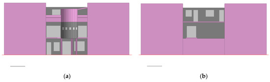 The different views of the 3D building model located in Villahermosa are shown in Figure 2 where building blocks are represented in dark gray color, the component blocks in purple, and the location and visual dimensions for the openings (fenestrations and doors) in light gray.