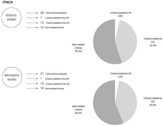 ITACA for residential buildings and for non-residential buildings protocol criteria related to AR and CE out of total criteria considered.