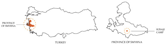 That is why this investigation is based on one of these settlements, that of Subaşi camp, which is located in the province of Izmir, in Turkey, and which can be seen in Figure 5. This will be the location for which the emergency house prototype will be designed.