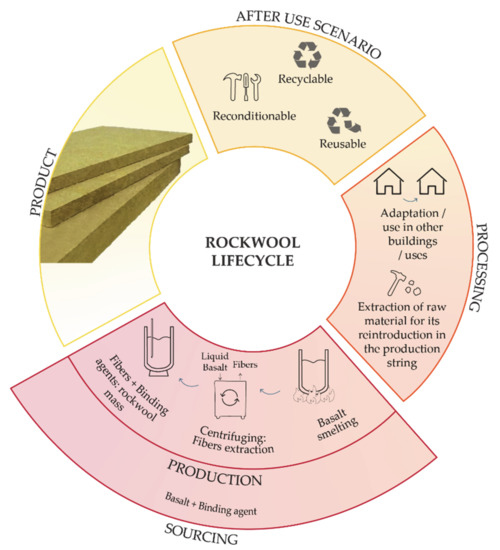 - Rockwool. Informe de Sostenibilidad 2019: Construidos para Durar. Available online: https://www.rockwool.es/nuestra-vision/sostenibilidad-y-circularidad/economia-circular/ (accessed on 15 August 2020).