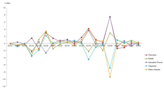 The daily regression model and the regression coefficient of each explanatory variable are tested. The results show that in all the 26 days of the study period, the corresponding models of 20 days pass the test, accounting for 76.9% of the total number. The failure period is likely to be affected by the quality of the data itself, so the regression coefficient of each explanatory variable in those days would not be tested.