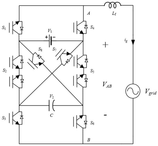 In the literature, it has been reported that multilevel inverters (MLIs) ensure a higher power quality compared to conventional 2-level inverters, which make them a good candidate for RE applications [5]. In various MLI topologies, the design mainly consists of the use of DC voltage sources, capacitors, and medium power semiconductor devices that operate at a reduced voltage rating. These topologies, which generate multiple DC voltage levels at the output terminals, have several advantages compared to the conventional two-level inverters such as lower switching losses, lower voltage stress on the power semiconductor devices, reduced electromagnetic interference, higher efficiency, and lower harmonic pollution and filter size [6,7,8]. On the other hand, the complexity of the inverter’s design increases and the overall reliability of the system decreases with the increase in the number of levels. That is because each switch used in the design requires a related gate driver and a protection circuit. As a result, the increase in the power semiconductor switches in the design leads to increases in the system’s cost and the control complexity [8,9]. Moreover, using multiple DC sources in MLIs topologies raises concerns regarding the increase in the power losses and malfunctioning in the system due to the unbalanced power sharing among the isolated DC sources [10]. In PV systems, the increase in the required DC sources implies an excessive number of DC-DC converters.