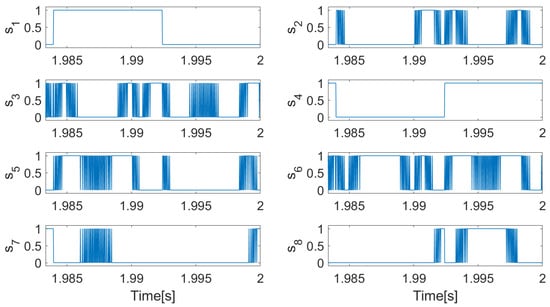 The transitions of the eight switches () for one steady-state cycle without using the switching optimization algorithm.