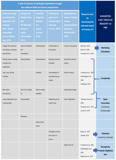 The structure of logic behind the proposed five key traits of the I4.0 PMs.