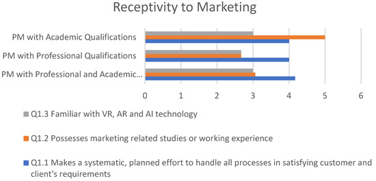Questions 1.1, 1.2 and 1.3 assessed the respondents’ opinions concerning how important they find marketing orientation is to the PM profession. As discussed in earlier sections, marketing orientation is key in understanding how psychological factors influence marketing decisions in I4.0. In order to determine the importance of marketing orientation, the behavior and expectations of clients and project stakeholders must first be understood. The responses to Q 1.1, 1.2 and 1.3 are represented in Figure 4, which presents the average of the answers.