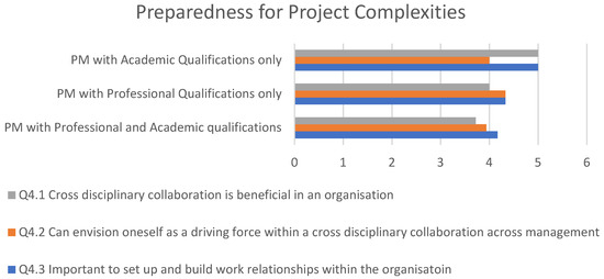 The increasing complexity of projects is expected alongside the increased complexity in technological and organizational orientation. Therefore, the 4th category of questions (Q 4.1, 4.2, 4.3) aimed to determine respondents’ readiness for project complexities. The results are presented in Figure 6.