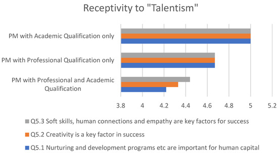 PMs with professional qualifications provided similar responses but showed a strong understanding of the concepts of talentism. PMs only with academic qualifications indicated that talentism was the key factor determining success in I4.0.