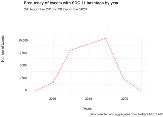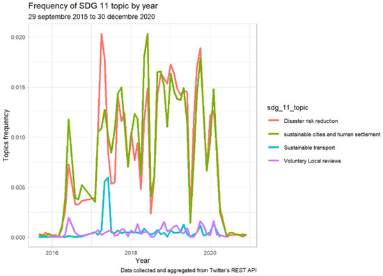 Finally, the context of the COVID-19 pandemic impacted the engagement of Twitter users to SDGs as the frequency of the tweets referring to SDG 11 decreased in 2020.