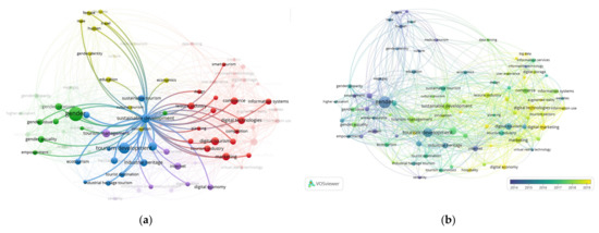 Furthermore, since 2018, the scientific communities have researched tourism issue with a focus on sustainable development tourism and digital marketing for tourism promotion (Figure 2b). Using the VOSviewer and CiteSpace, the authors of [25,26,27] outlined similar tendencies in post-industrial and sustainable tourism research.
