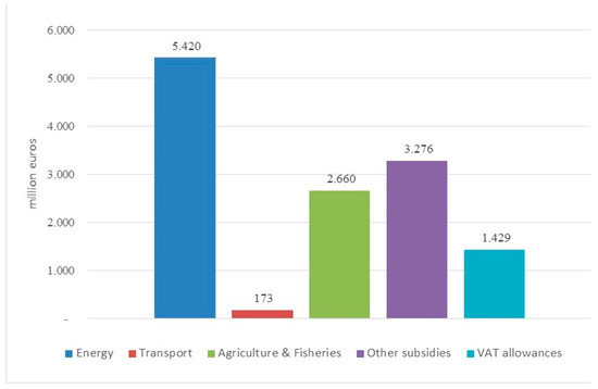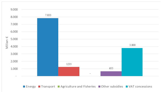 For the provisions of art. 68 of Law 221/2015, subsidies “are considered in their broadest definition and include, among others, incentives, tax concessions and exemptions, subsidized loans directly aimed at protecting the environment” [18]. This explains why the Catalogue examines not only direct transfers but also “indirect” subsidies, such as tax expenditures, implicit subsidies and cross subsidies paid through regulated tariffs on public services (electricity, gas, waste and water services). On the other hand, subsidies intended as the monetary value of environmental damages not properly transferred into market prices by the use of environmental taxes (optimal tax revenue loss) have so far been excluded from the Catalogue, even if there is a specific strand of literature providing methods and post-tax external costs estimations under this approach [44,45,66].