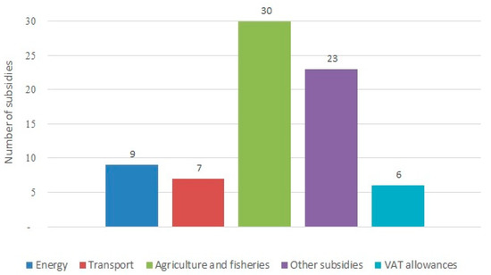 In this sector (41 subsidies examined), as many as 12 measures have been identified in contrast with the CE principles (SM 2 Table S3).
