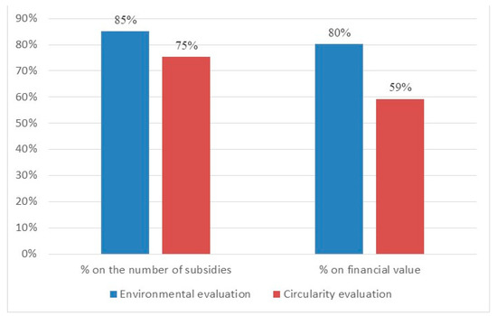 In Section 4.3 the summary results of the circularity analysis (in terms of number of subsidies) are compared with those of the environmental analysis of the Catalogue, focusing in particular on the commonalities and differences of the outcome of the two evaluation approaches.