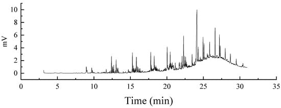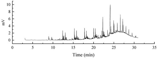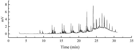 The chemical composition of asphalt is extremely complex, and the most important elements are carbon and hydrogen. In addition, there are small amounts of oxygen, nitrogen, and sulphur, which are often referred to as heteroatoms. In the production of natural asphalt, it has been found that there are more than 50 kinds of trace elements, which are mainly Fe, Ni, V, Al, Na, Ca, Cu, Cl, Br, and I; generally, the V, Ni, and Fe contents are the greatest. Generally, different organic solvents or different adsorbents are used to selectively dissolve asphalt into several components with similar chemical properties and a colloidal structure. The four components of asphalt are asphaltene, resin, aromatic, and saturate []. Viana et al. [] measured the content of chromium and nickel in petroleum asphalt, and Souza et al. carried out a spectral analysis of vanadium in asphalt []. Sugiyama proposed an ICP–MS-based heavy metal detection method []. Gab–Allah et al. [] summarised and analysed the methods of analysis of sulphur and heavy metal elements in petroleum products. Niles et al. studied the influence of sunlight on pollutant precipitation by using a simulated illumination method, and the results showed that the amount of precipitation of organic matter in water during one week of sunlight irradiation was more than 25 times that in a dark environment []. Brandt extracted and measured PAHs in asphalt by using a dynamic leaching experiment []. Road-marking materials generally consist of fillers, auxiliaries, and solvents, which may contain volatile organic compounds, benzene series, halogenated hydrocarbons, alcohols, esters, ketones, and soluble heavy metals []. Jin et al. found lead, cadmium, mercury, chromium, and other heavy metals in paint by means of microwave digestion and inductively coupled plasma emission spectrometry. In addition, the national standard GB/T 36488–2018 specifies the use of gas chromatography–mass spectrometry for the determination of polycyclic aromatic hydrocarbons in coatings []. Pan et al. analysed the migration amounts of PAHs in paint by using solid-phase microextraction/gas chromatography–mass spectrometry [].