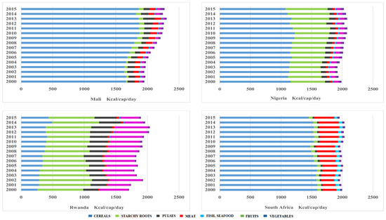 3.3. Scenario of Food Supply from Food Consumption Patterns in Sub-Saharan Africa and Impacts in Changing Food Consumption Patterns