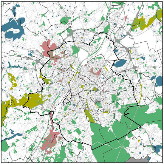 65. Loeckx, A.; Corijn, E.; Persyn, F.; Avissar, I.; Smets, B.; Mabilde, J.; Vanempten, E. Metropolitan Landscapes: Open Ruimte Als Basis voor Stedelijke Ontwikkeling—Espace Ouvert, Base de Développement urbain; Mabilde, J., Vanempten, E., Devoldere, S., Oosterlynck, C., Eds.; Vlaams Bouwmeester: Brussels, Belgium, 2016; p. 191. [Google Scholar]