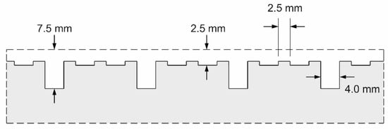 The specimens labelled with (B) were wire-brushed. For specimens labelled as (BD) the UHPFRC was cast against a dry wire-brushed substrate, whereas the substrates of all further test series are pre-wetted before casting. Through the sandblasting with a 0.4 mm sand the fine grain was exposed. In the water-jetting treatment, a water pressure of 2.500 bars was jetted on the interface from a distance of 25 cm. With the grooving treatment technique, a well-defined interface texture was produced (compare Figure 4).