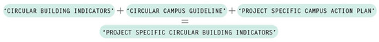 Therefore, ‘Circular Building Indicators’ were identified and built precedents studied at first, to superpose the findings with the ‘Circular Campus Guideline’ and derive the ‘Project Specific Circular Building Indicators’, including benchmarks (see Figure 2).