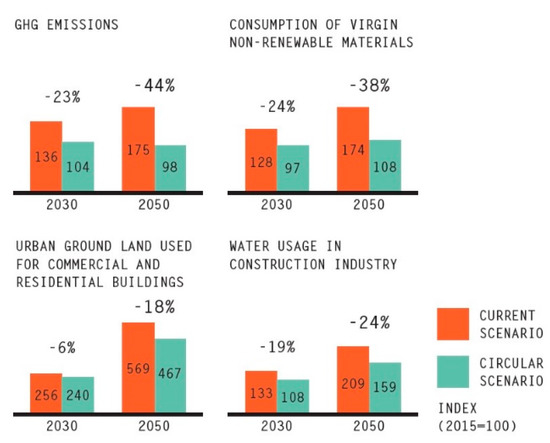 Considering that the world’s population will rise by 41% by 2050 [27] and 60% of the buildings that will exist by then are yet to be built [28], shifting from linear to circular economy thinking is expected to have significant environmental, social and economic benefits.