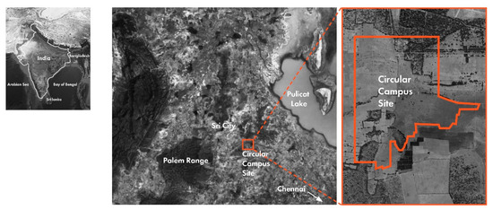 The case study site is located in India, in the state of Andhra Pradesh at the border of Tamil Nadu, 60 km North-West of Chennai (see Figure 7). The plot lies within the boundaries of the new Sri City development, a ‘Future Smart City’ offering integrated business solutions. The area is part of the Plateau of Peninsula India and the coast of the Bay of Bengal and Pulicat Lake habitat are about 20 km to the east of the site. The Palem Range hills lie to the west. The proximity to Sri City and especially Chennai implies access to infrastructure and industries, such as steel, iron, machine tools, automobile, cotton, silk, paper, rubber and leather.