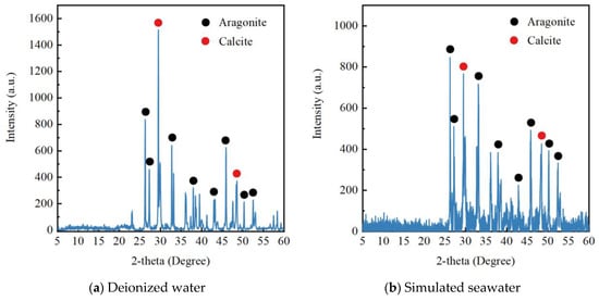 XRD analysis of carbonate mineralization products in different environments. (a) Deionized water. (b) Simulated seawater.