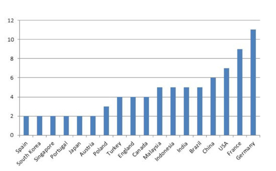 The contribution of the authors from Brazil, India, Indonesia and Malaysia is 5 papers per each country. Moreover, there were also some authors from Canada, Turkey and England who contributed to this field by writing 4 papers, followed by Poland with 3 papers and various other countries who contributed 2 articles. Figure 7 illustrates the research publication distribution on a map. Its results clearly show that Europe is the top research area of Industry 4.0 and agility.