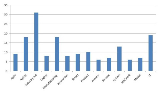 The “Industry 4.0” remains the most popular keyword, followed by “Agility”, in the titles of the papers. The other keywords which were used together with Industry 4.0 and Agility were: “Manufacturing”, “IT”, “System”, “Digital”, “Product”, “Agile”, “Smart” “Innovation”, “Digital” and “Model”. It was also possible to identify such words as “telecommunication 4.0” and “leadership 4.0”.