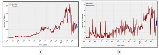 - Petropoulos, F.; Makridakis, S.; Stylianou, N. COVID-19: Forecasting confirmed cases and deaths with a simple time series model. Int. J. Forecast. 2020. [Google Scholar] [CrossRef] [PubMed]