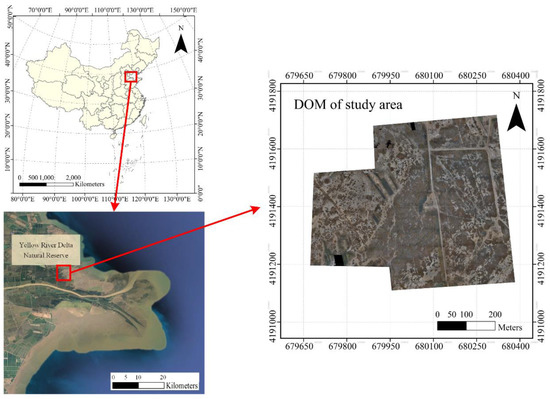 Site location and DOM of the study area in the Yellow River Delta, China.