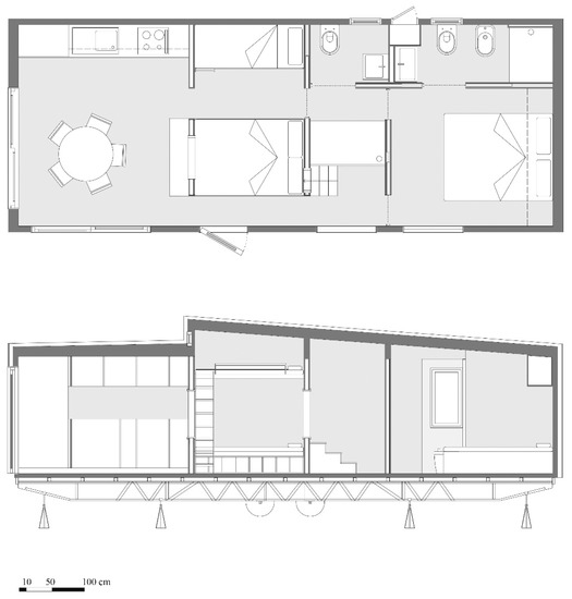 One of the most spectacular forms of the present is tourism, which is a mirror of contemporary society [9]. Sustainability in the field of tourism finds an immediate comparison with outdoor tourism where there is a strong relationship with nature and the surrounding landscape. However, the reflection on sustainability in this field needs to be analyzed on different levels including taking into account the sustainability value of the individual accommodation unit. The placement of accommodation facilities in particularly sensitive areas of the territory and of particular landscape interest requires greater sensitivity to sustainability issues both in terms of composition at an architectural level and in a technical key through the use of properly selected materials with respect to the environment. Thus, the need for improvement on a sustainable level does not only concern ordinary buildings today. The theme of outdoor tourism still has deep gaps and it needs more sensitivity in terms of ecology. In Italy alone, there are more than 2600 outdoor accommodations and that can accommodate together up to 1,000,000 tourists at the same time, considering that the arrivals in the outdoor accommodations have increased by about 15% since 2010 [10]. The number of tourists in Italy was more than 131,000,000 in 2019, of which more than 10,000,000 were arrivals in outdoor accommodations [9]. These numbers combined with a failed sustainability approach have a strong environmental and landscape impact. Within these structures, mobile homes represent the real actors of these contexts, being the most widespread typology, thus defining their landscape. The production of mobile homes operates independently of the context in which they are placed, creating environmental disconnections in which, at most, “façade operations” are activated which do not solve the environmental problem. Mobile homes are housing units on wheels for seasonal occupation produced on an industrial level and placed within the outdoor accommodation facilities. They have a usual dimension of 8 × 4 m, can accommodate up to six people, and consist of a kitchen-living room, bedrooms, and toilet and are usually connected to a veranda. They are designed to be easily transported usually by truck or by tow. The main characteristic of mobile home is that they do not need any permanent foundations, therefore they are easily removable. This last feature gives it a privileged position in the current European debate on the issue of land use. In fact, soil sealing is one of the main causes of soil degradation in the European Union, and to this end the European Commission is committed since 2011 to promoting a more sustainable use of land and soil, an objective made explicit with the “Roadmap to a Resource Efficient Europe” in which an increase in net land use equal to zero by 2050 is set as the goal. In these terms, the mobile home product is not permanently connected to the ground, therefore it does not consume soil and it gives rise to reversible settlements. This, connected to the fact that they are industrially produced and therefore with dry assembled materials and to the fact that they are flexible thanks to their transportability, represents a sustainable choice compared to ordinary buildings.