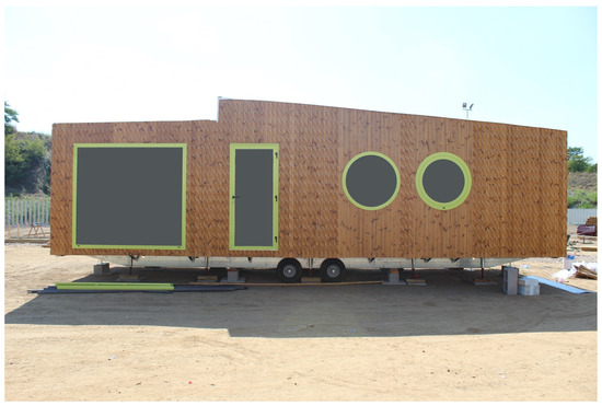The output of the research was the production through the company Crippacampeggio (Carate Brianza, Italy) of a prototype (Figure 13 and Figure 14) of a 92% natural, 35% recycled, and 100% recyclable mobile home, inserting itself within the production process currently in use by the company without interfering with the current assembly line. Possible developments of the research that is being carried out in the AUDe laboratory have as objectives not only the mobile home product, but the entire process being certified, from production to its use, thus paying attention to every single phase. An example to consider is the certification of the final product through a protocol known worldwide such as LEED. Thus, attention is therefore placed on materials and in particular on their origin, disposal, and recyclability. Furthermore, in the industrial point of view, today, products and wastes are produced simultaneously, where instead it would be necessary to direct the industry sector towards ecology, structuring it to measure the environmental impacts. It is necessary to produce light structures by using recycled/recyclable materials or components, thus improving the environmental performance and reducing the costs in a cyclic view and reducing embodied energy as well as deleting waste [19]. Focusing on reducing embodied energy, which means consumed energy during extraction, processing of raw materials, transportation, and construction and demolition processes, allows us to reduce the impact on the environment and to design long-lived constructions [20]. It is not only the attention on embodied energy that allows us to plan consciously, but also the search for a NZEB product can have an impactful effect on the environment and on the performance of the building. The use of this type of approach on a product such as that of mobile homes allows a significant reduction in costs due to the maintenance, heating, and cooling of the housing units, especially during the summer, when they are most used.