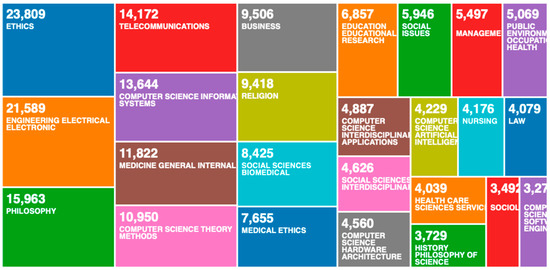 Research areas categorisation of 155,931 records on ‘ethics, OR cyber risk’, analysed with the Web of Science record analysing tool.