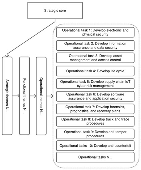 The execution of the tasks is one of the crucial points of relevance for future researchers and practitioners applying the epistemological framework. The key to the execution is in the wording of the strategic, functional, and operational themes and the operational choices. The framework presents a hierarchical structure in the wording, where higher ranked themes present more nominal (descriptive) themes, while the lower ranked themes and choices present imperative statements in the wording. For example, in Figure 12, the example of a ‘strategic core’ is a statement: ‘Digital ethical’. The statement represents an idea as a vision of something to achieve, but it does not detail the process. An example of a ‘strategic theme’ from Figure 13 would be ‘Develop ethical IoT risk awareness’. The wording tells you what to do, but it does not explain how this would be achieved.