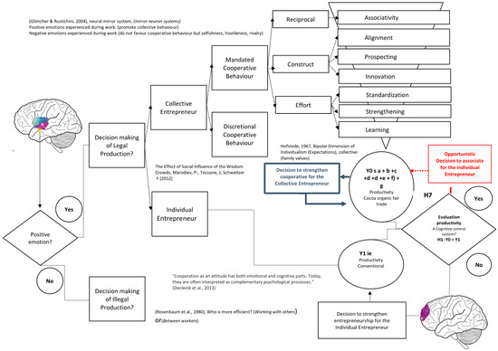 The sixth decision-making or mandated cooperative behavior (Figure 1), is by farmers who decided to belong to the cooperative that produces organic cocoa and fair trade could incentivize their productivity in a (more structured) way through: “The Cooperative Innovation Methodology on Prospecting For Fair Trade Organic Niche” through which they can participate in a chain that focuses on exporting to market niches and innovates with new pipelines through seven strategic phases such as phase 1: associativity, phase 2: alignment, Phase 3: prospecting, Phase 4: innovation, Phase 5: standardization, Phase 6: strengthening, Phase 7: learning to boost productivity. In the same way, Michael Cook [2] mentions structured management: “cooperative genius”.