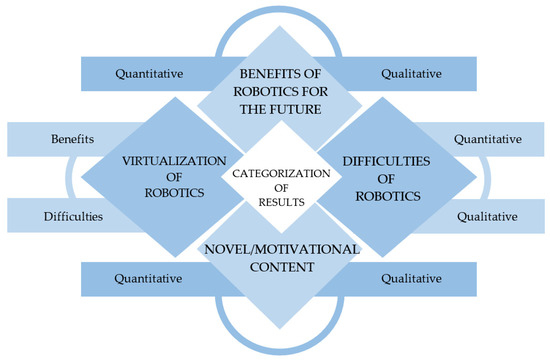 As we can see in Figure 2, each content block is divided into two subsections, where we analyze both the quantitative and the qualitative data, except for the Robotics Virtualization section where we propose the advantages and difficulties that they entail.