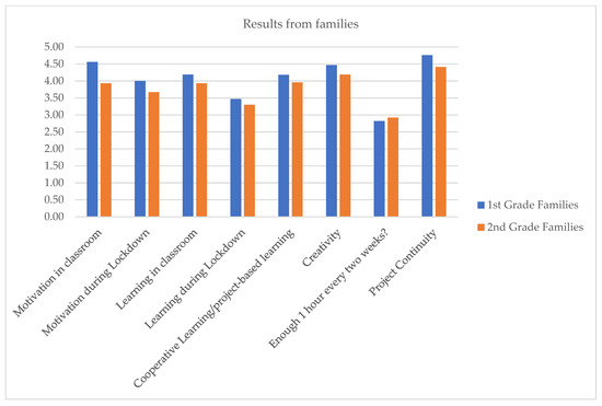 At the end of the 2019–2020 school year, we were interested in investigating the opinion and satisfaction level of the families involved in 1st and 2nd grade with the introduction of robotics in the school life of their children. We also asked about the lockdown period, in which their children had received material to work with robotics at home.