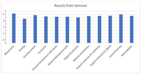 Average of the questions asked to the students of the Educational Robotics Seminar (from 0 to 5, 0 is the lowest rating and 5 is the highest).
