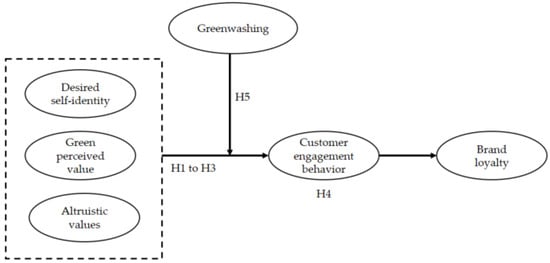 This study aims to investigate the impact of desired self-identity, green perceived value and altruistic values on brand loyalty towards green brands (i.e., electric and hybrid cars) and the mediating role of customer engagement behavior on these relationships. Further, this study proposes that greenwashing perception, which can be defined as consumers perceiving organizations to be dishonest about their environmental claims, moderates the indirect effect of desired self-identity, green perceived value and altruistic values on brand loyalty via customer engagement behavior. Data were collected from a nationwide online survey of 170 customers who have purchased and used electric and hybrid cars. Partial least squares structural equation modeling (PLS-SEM) using Smart-PLS and PROCESS were employed to test the hypotheses. This study’s findings indicate that desired self-identity, green perceived value and altruistic values positively influence consumer engagement behavior with the focal green car brands. Further, the mediating effect of customer engagement behavior on brand loyalty was generally found. Additionally, greenwashing perception was found to moderate the indirect effect of desired self-identity and altruistic values on brand loyalty via customer engagement behavior. The indirect effect of desired self-identity and altruistic values on brand loyalty via consumer engagement behavior was stronger at lower levels of greenwashing perception than at higher levels. This study offers key managerial implications on how green brands can promote customer engagement behavior and brand loyalty.