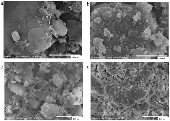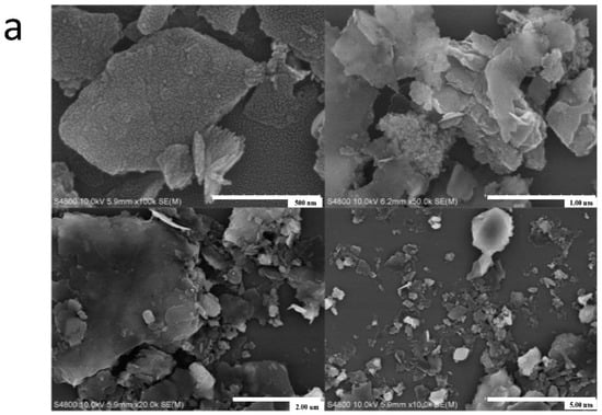 The surface features also related to the morphology of particles, therefore we conducted SEM measurements (Figure 3). Briefly, the structure of as-synthesized HCG and KCG became relatively loose after chemical modification. The surface of fresh CCG was relatively dense, and there were no large pores or fractures. The activated HCG and KCG presented decreased particle size and some irregular layered structures, which contribute to increased surface areas.