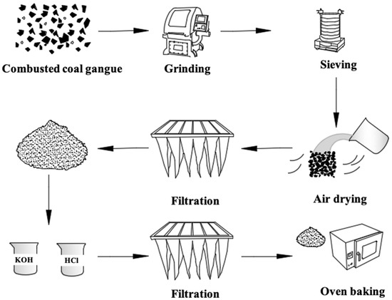 Even with the growth of renewables and natural gas, coal resources are still the primary fuel to provide energy for daily life and industry. However, coal mining activities lead to various wastes, including CO2 emissions [1,2], heavy metal-induced acid mine drainage [3], and coal gangue heap [4]. Among them, the accumulation of coal gangue (CG) and combusted coal gangue (CCG) without appropriate utilization has resulted in land occupation, landscape destruction, as well as heavy metal pollutions [5]. Currently, coal gangue is mainly used in the field of backfilling, building materials, agriculture, energy generation, soil improvement, and other high-added applications [6,7,8].