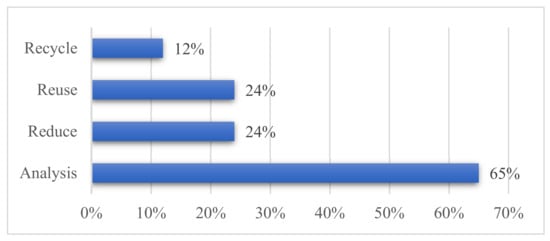 As illustrated in Table 4, existing technologies and methods focus on strategies (“analysis” or the “3 Rs”) and stages of the life cycle, a description of the content of each category follows.