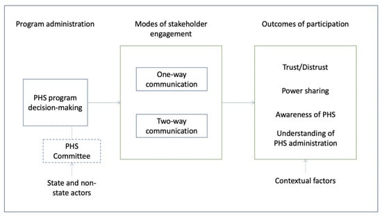 We respond to this call by using a multiple-case study approach to better understand how, by whom, and to what extent, program stakeholders are engaged in PHS decision making and have been able to influence its outcomes. We focused our analysis on the mechanisms of PHS administration and methods of stakeholder participation that PHS program administrators, governmental agencies, non-profits, and other actors have used to engage the public in the decision making, implementation, and evaluation of the PHS program. Our comparative analysis explores the multivariate causal patterns [,] across the case studies that influence program decision making and have helped to adopt and/or shape international policies in a way that meets local contexts []. Ultimately, we sought to understand the role of PHS stakeholders in environmental decision making by highlighting the similarities and differences between the case studies.