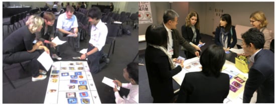 The participants of the workshops are asked to sort the photos into the abovementioned A, B, C, De, and Di categories, after a brief explanation of the classification scheme by the facilitator. We preferred to set this up as group work, with groups consisting of people with different backgrounds, as that would trigger discussions and deeper considerations among the participants. The authors conducted this workshop on many occasions, such as international academic or professional conferences (e.g., Sardinia 2019, Meeting of Agricultural Chief Scientists of G20) (Figure 5), seminars for international students (e.g., Keio University Japan, University of Cambridge UK), as well as at staff briefings, before conducting sorting analyses based on this classification.