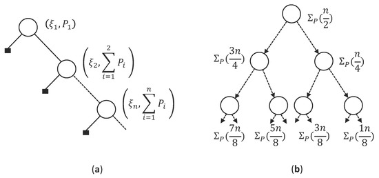The tree must be constructed respecting the priorities and the power level of each node, as shown in Figure 3a. In its more general formulation, the tree itself is constructed respecting the priorities of the nodes, and the search engine must calculate at runtime for each node whether the cumulative sum of the node power until the node under test satisfies (4). A small optimization is achieved by changing the top node, but the performance can be doubled at maximum. Therefore, a better approach must be adopted to reduce the computational time.