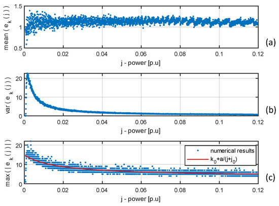 Let us evaluate the prediction error of the random function , with j being the power “granularity”, i.e., the maximum power that each load can assume with respect to the available power, as defined in (11).