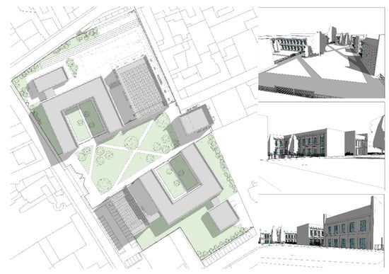In previous studies, the described methodology was tested on a green field of a new construction project, namely a public school facility in Melzo, Italy [12]. In the present research, the model is applied to a brownfield renovation, including an extensive demolition phase and the final design and construction of a new public school complex in Inveruno, Italy. The selection of the case study aims to demonstrate the positive outcomes of the model application to support the proper renovation of brownfields, thus promoting renovation processes to recover the quality of community land. Furthermore, the application of the model on a case study that is more complex than the previous one mentioned above can demonstrate the replicability of the proposed methodology.