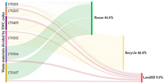 The construction sector is an industry with a high intensity of raw material consumption, corresponding to about a half of the Earth’s raw materials [1,2]. In addition, over one half of annual material input returns as waste in the industrialized countries every year [3]. Construction and Demolition Waste (CDW) accounts for one third of the total amount of waste by volume in the EU, as reported by the EUROSTAT 2019 Waste Statistics [4]. Considering the high consumption of raw materials and the high level of discard production, the CDW management process must be reengineered to reduce scrap and to take advantage of the high potential for reusing and recycling materials when construction waste is correctly identified and separated through selective demolition procedures [5]. Waste management in the Architecture, Engineering, Construction, and Operations (AECO) industry requires adopting a ‘cyclic’ rather than a ‘linear’ approach [6]. The transition toward a circular economy approach in the AECO sector is aligned with the global framework to avoid dangerous climate change effects set by the Paris Agreement [7].