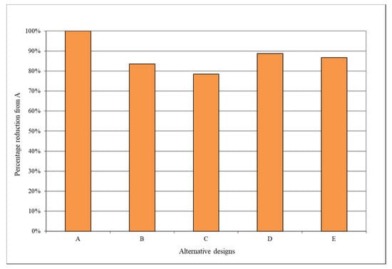 LCCA for alternative strategies. (A) reference design; (B–E): alternative strategies.