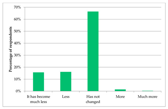 Fifth, food-use habits and attitudes also changed. The survey outcomes suggest a decrease in food waste. This change could mean that, during the pandemic, consumers have implemented an extensive range of effective food management tactics, such as more innovative food shopping plans, better in-house food storage, and higher usage of leftovers. This indicates an interesting trend towards more sustainable food consumption behavior. Knowing that food waste is one of the leading waste streams in Bosnia and Herzegovina, and the volume of waste produced has continued to increase over the last few years, this constitutes a positive change. Before the COVID-19 pandemic, every day, almost 500 tons of food waste ended up in landfills. Food waste accounts for more than 12% of daily waste disposal at the landfill in Canton Sarajevo [41].