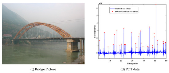 The POT method is a natural choice for modeling exceedance over a threshold. It has shown its importance and success in a number of statistical analysis areas such as finance, insurance, hydrology, and geographical phenomena domains [14,41,42], and in recent years, it has attracted attention for modeling extreme values of bridge traffic load effect.